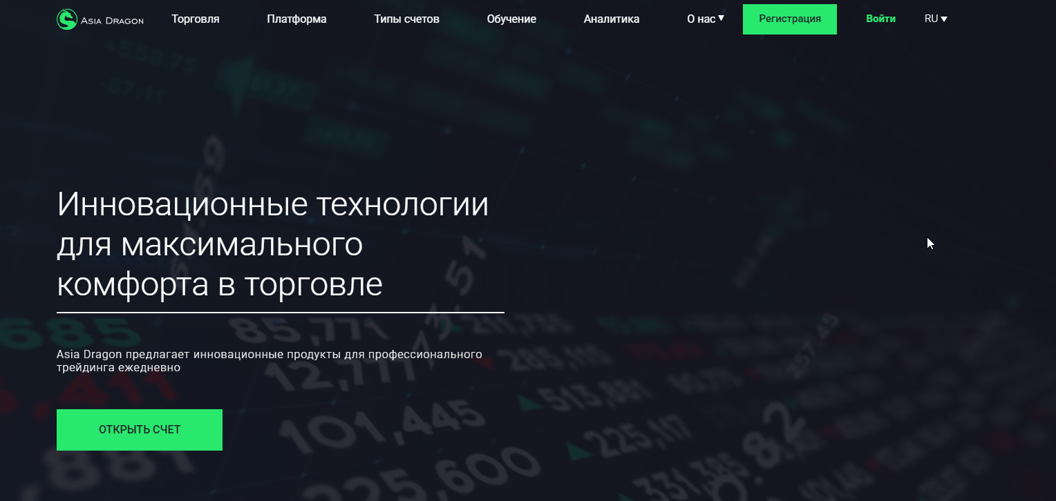 Asia dragon называет себя инновационным посредником для профессионального трейдинга. Клиентам предлагается круглосуточный доступ к рынку и торговому терминалу. Для торговли используется современная высокотехнологичная платформа. Помимо широкого ассортимента инструментов трейдеры могут оценить вспомогательные сервисы с аналитикой и обучением. Соответствует ли действительности все заявленное, предстоит разобраться в статье.