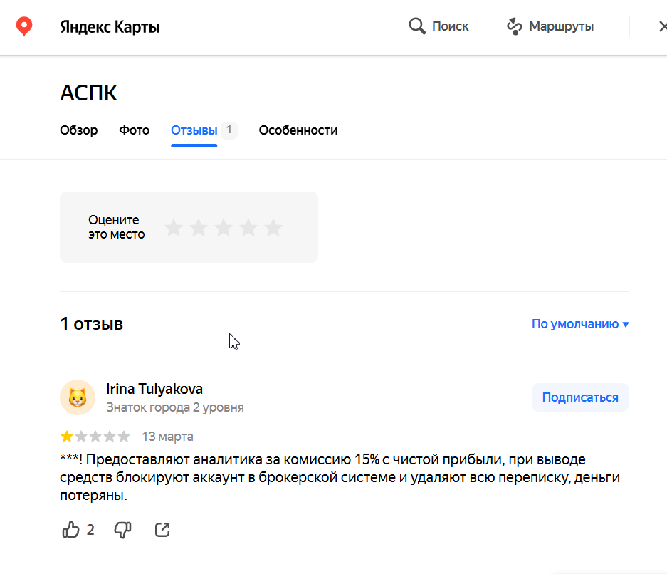 Оставьте Ваш отзыв о работе с Aspk Capital
