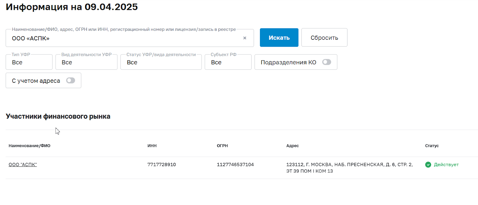 На сайте указано, что брокер предоставляет доступ к «выгодным сделкам» и современным инструментам для торговли. При ближайшей проверке «Аспк Капитал» становится ясно: регистрация в регулирующем органе есть как ООО «АСПК», но никакой информации о лицензии найти не удалось.