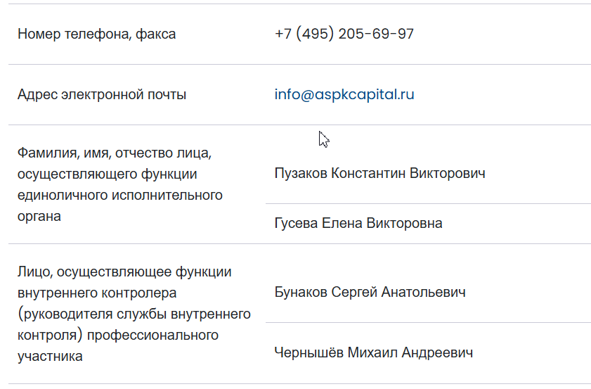 • Активность в соцсетях нулевая, поддержка отсутствует — если исчезнет сайт «Аспк Капитал» вы останетесь без контактов и без доступа к средствам.