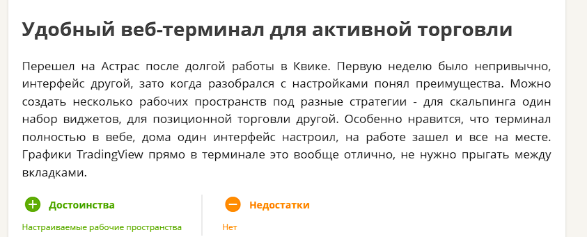 В целом многие комментаторы пишут, что Astras – неплохая альтернатива более устаревшим платформам. Но при этом есть и скептические отзывы, которые гласят, что этот терминал ещё слишком сырой. И со зрелыми платформами ему пока не сравниться.