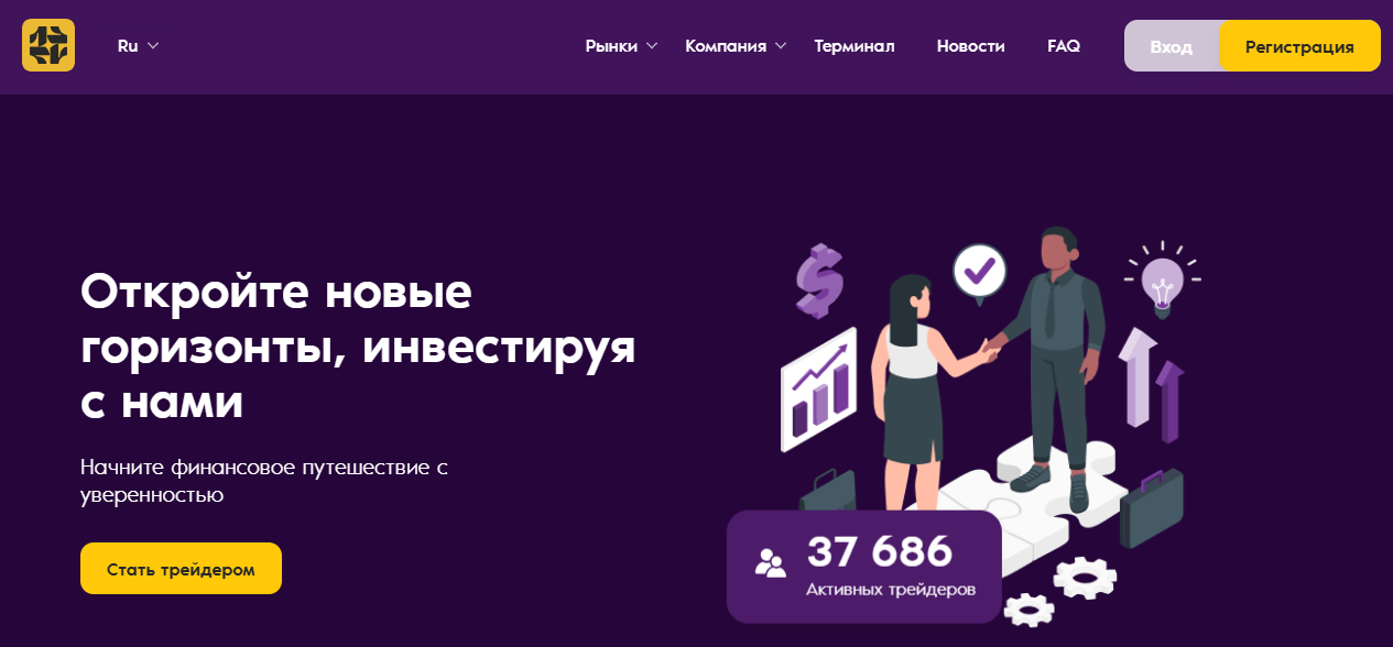 - 2017 год — выход на рынок, внедрение собственных инструментов для трейдинга, поиск инвесторов и партнеров, завоевание доверия первых трейдеров-клиентов.