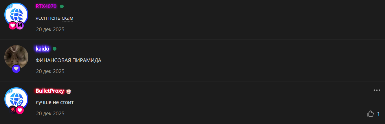 Подобных негативных комментариев немало и все они содержат примерно одну и ту же критику. Люди считают, что это финансовая пирамида и доверять ей нельзя.