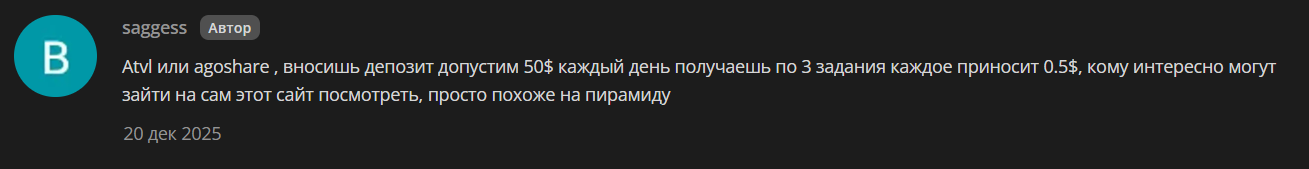 В сети есть различные отрицательные оценки платформы и, как сообщают участники в некоторых разоблачениях, Atvl – пирамида, а заработок – скам, поскольку нужно заплатить $50 долларов за три задания в день, а каждое приносит около $0.5.