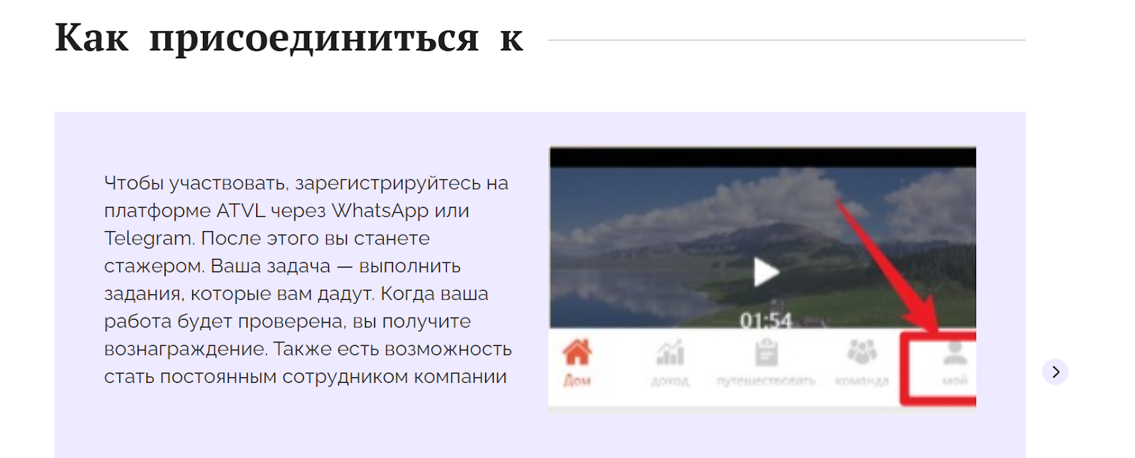 Регистрация на платформа возможна через мессенджеры WhatsApp и Telegram. Создав аккаунт, участник становится стажером и должен выполнить первые задания. После проверки есть возможность получить награду и стать постоянным сотрудником компании.