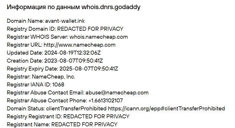 Домен кошелька был зарегистрирован в 2023 году и обновлен в 2024. Сам сайт поддерживает только английский интерфейс, то есть у русскоязычной аудитории могут возникнуть сложности с при использовании Avant Wallet.