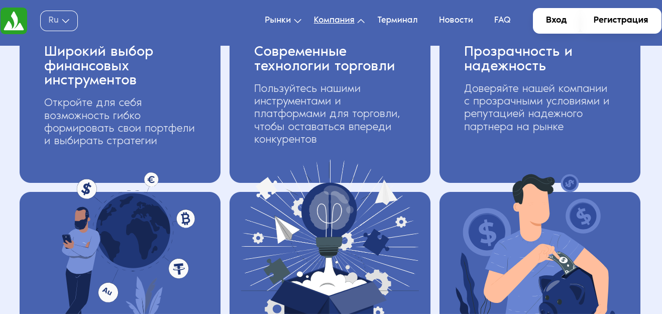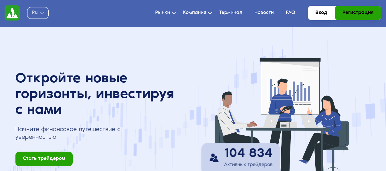 На главной странице сайта мы нашли приписку «Откройте новые горизонты, инвестируя с нами». Ее же наша редакция видела на десятках других ресурсах по инвестициях. Мы предполагаем, что биржа является частью крупной сетки. В качестве аргумента приводим повторяющиеся интерфейс брокера и стандартную приписку об успешности.