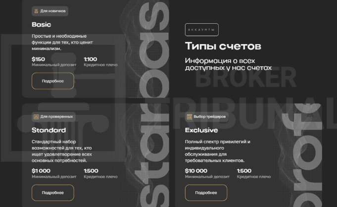Брокерская компания предлагает зарабатывать на торгах криптовалютой, индексах, инвестировании в сырьевые рынки, металлы. Дает возможность работать новичкам и опытным трейдерам. Пользователям доступно на выбор 3 счета: Базовый, Стандартный и Эксклюзивный. Для открытия аккаунта нужно пополнить баланс на минимально указанную сумму.