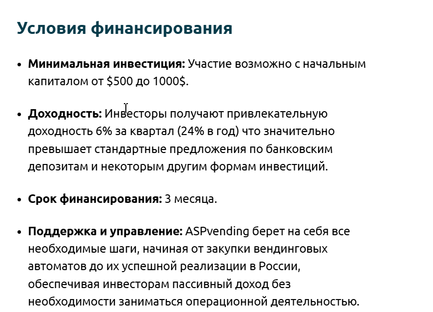 Примечательно, что создатели инвестиционной платформы не упоминают о каких-либо рисках, которые естественны для любого подобного проекта.