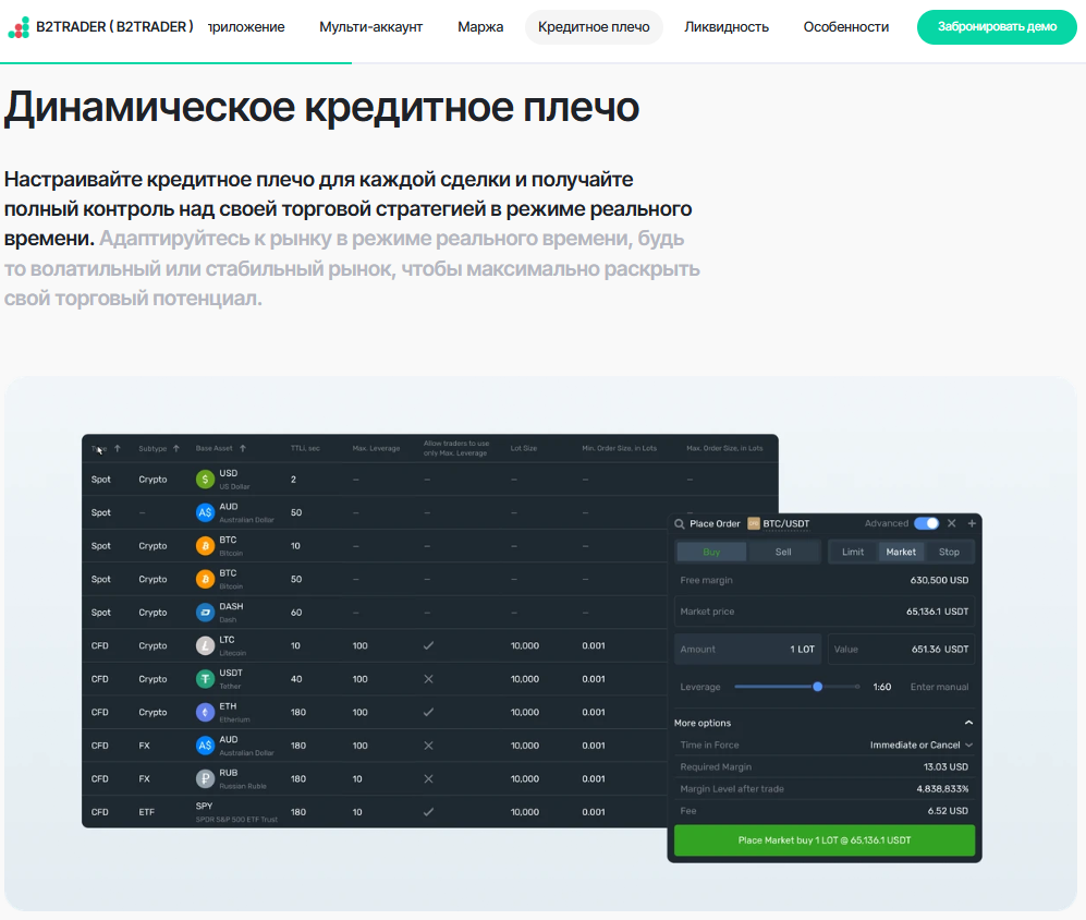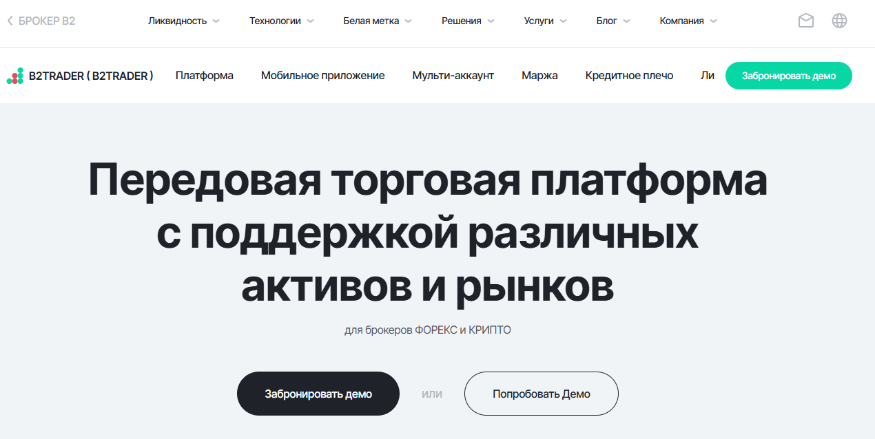 Предназначенный для трейдеров и брокеров, профессиональный торговый терминал B2Trader предлагает расширенный набор инструментов для маркет-мейкинга и множество торговых пар, а также предоставляет доступ к глубокой ликвидности.