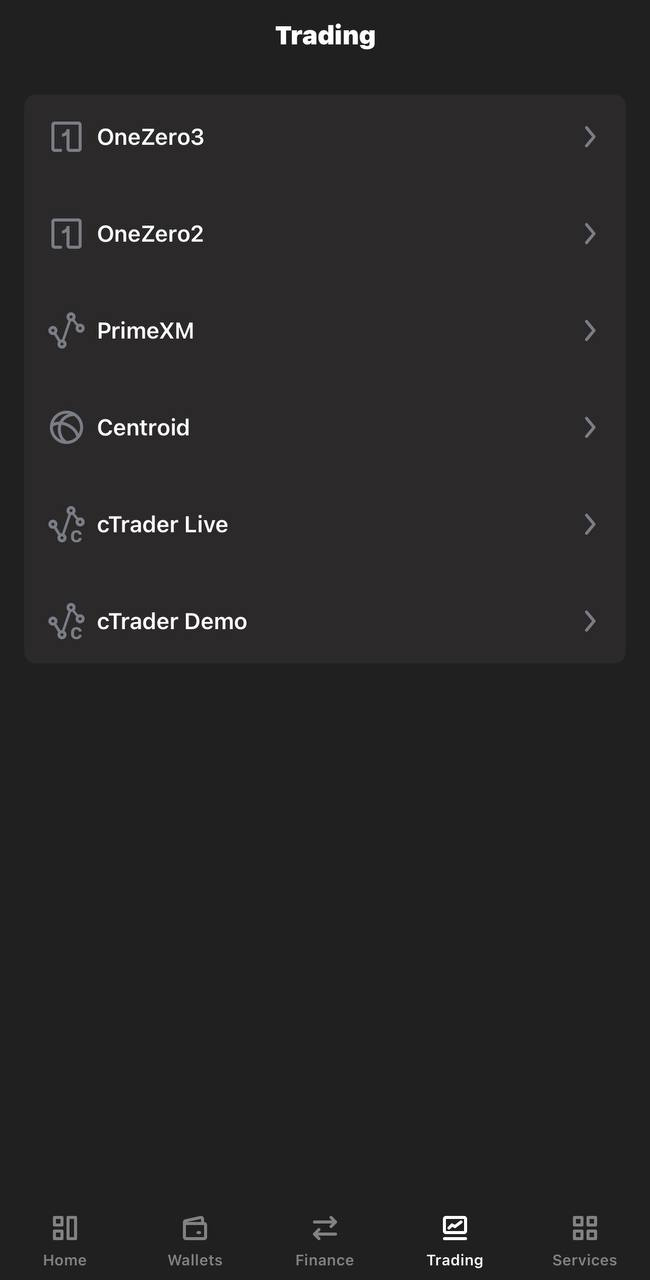 Брокер предлагает различные провайдеры ликвидности и технологические платформы, например cTrader или OneZero.