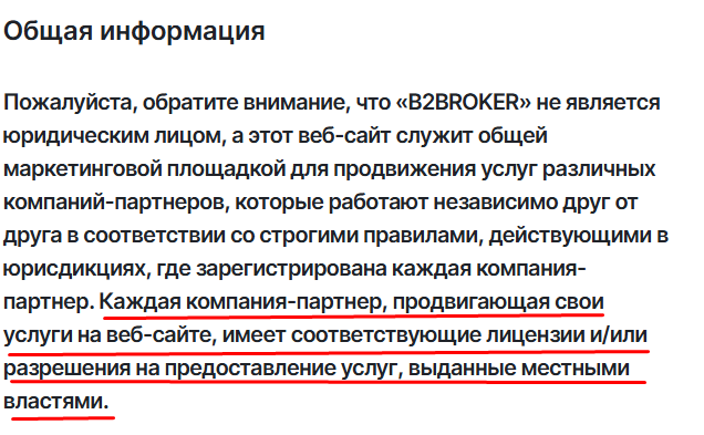 На самом же сайте B2 broker не даёт конкретной информации о собственных лицензиях или лицензиях своих партнёров.