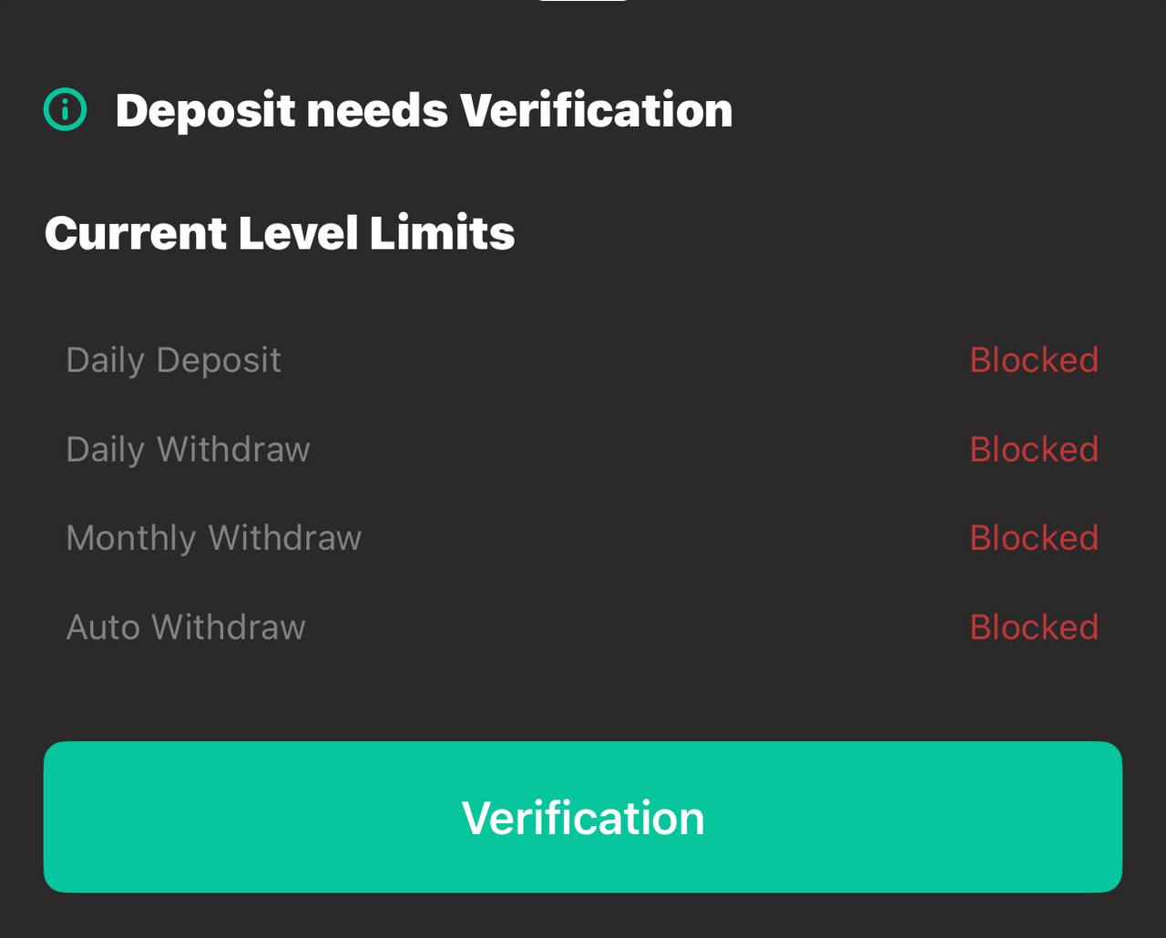В сети депозитинг описан как лёгкая процедура. Эта и вправду так, но для доступа к внесению средств нужно пройти верификацию. Без пройденной KYC, ежедневный депозит будет подвергнут блокировке, как и ежемесячный, это касается и вывода средств.