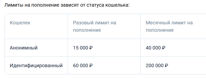 Комиссий за обслуживание, пополнение и покупки для покупателей нет, а лимиты для анонимных пользователей составляют ₽15,000 на одну операцию или ₽40,000 в месяц.
