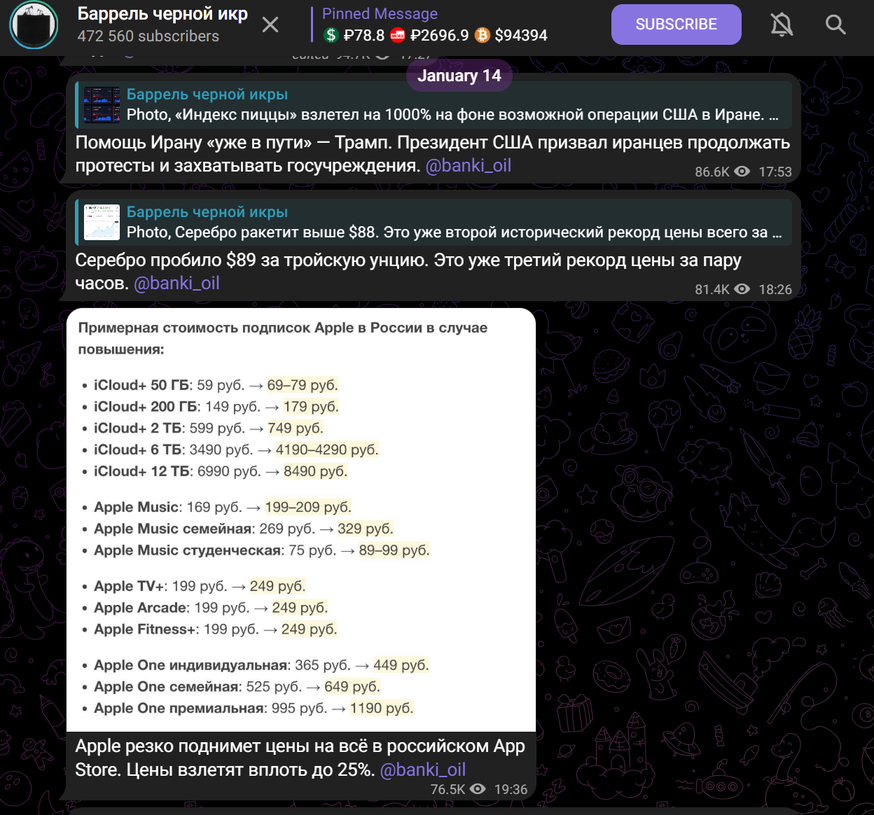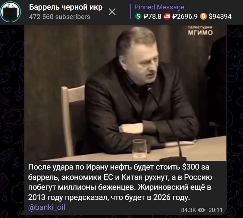 Сообщество Баррель Черной Икры — новостной проект, который размещает около 30-40 постов в день. Это далеко не все ключевые события, автор отбирает их по своему вкусу, копируя с открытых источников.