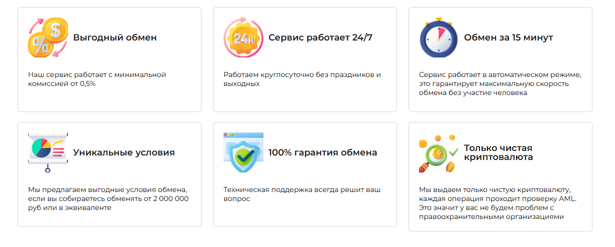 Авторы проекта заявляют о ряде плюсов, которые выделяют их обменник на фоне конкурентов. Ниже мы рассказали о них: