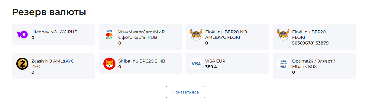 Также, на официальном сайте проекта Barry 24 есть раздел, в котором указываются резервы каждой доступной валюты. От них зависит минимальная и максимальная сумма, доступная пользователям к выводу.