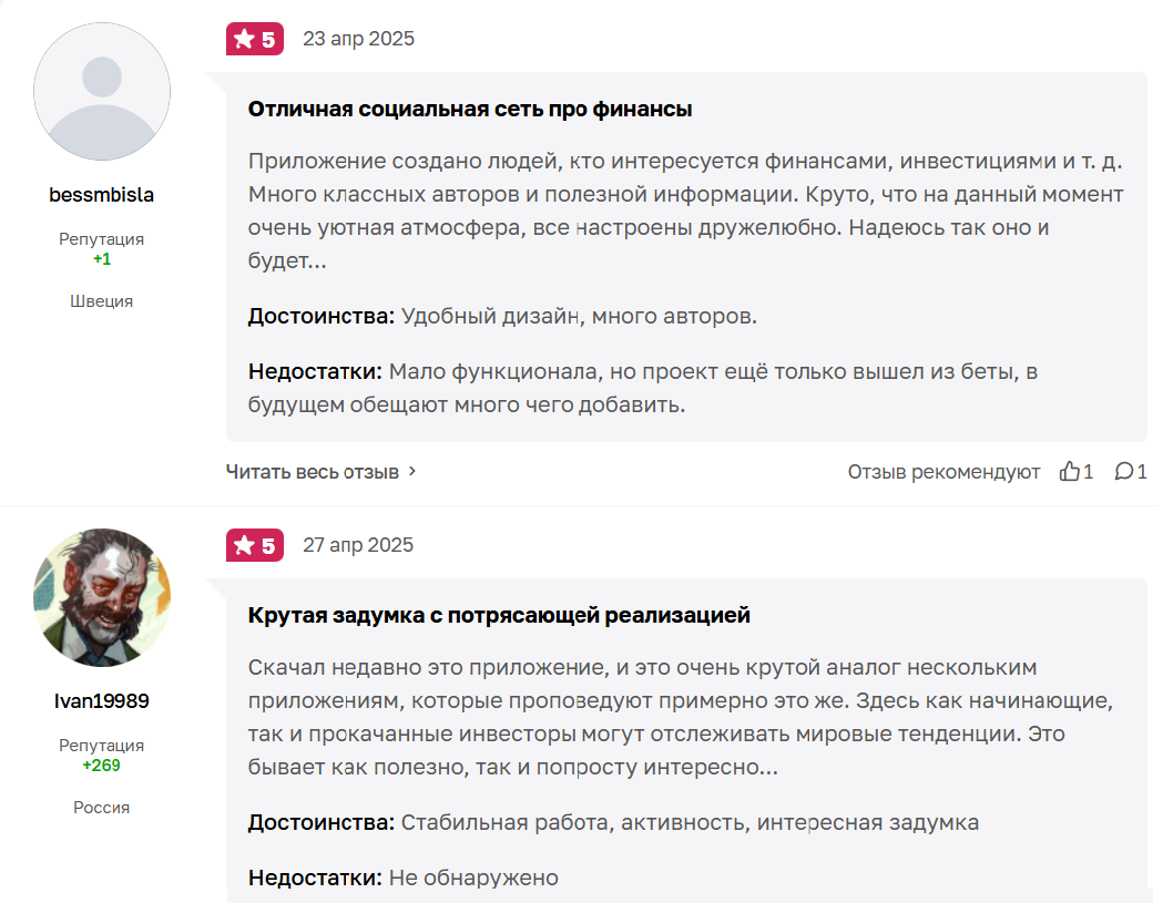 - Владельцы позиционируют проект как социальную сеть для обмена опытом в финансах без развлекательного контента, что привлекает целевую аудиторию;