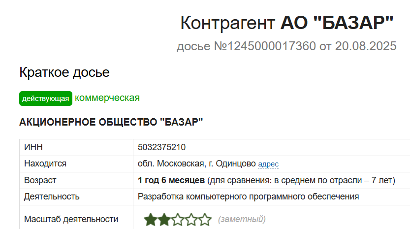 Компания работает легально под брендом АО «Базар». Это можно проверить на любых аналитических сервисах, например, на audit-it ru.