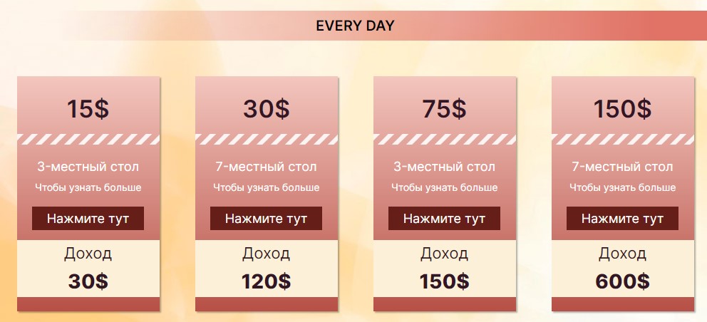 Компания работает по принципу финансовой пирамиды, который в моем случае не сработал. Здесь предлагают прибыль буквально в 2 шага, мол приходишь и приводишь с собой других людей. Ну, приходишь понятно деньги вкинул, а вот найти. еще 10 сумасшедших, которые захотят вкидывать деньги, у меня лично не получилось. В результате прогорел.
