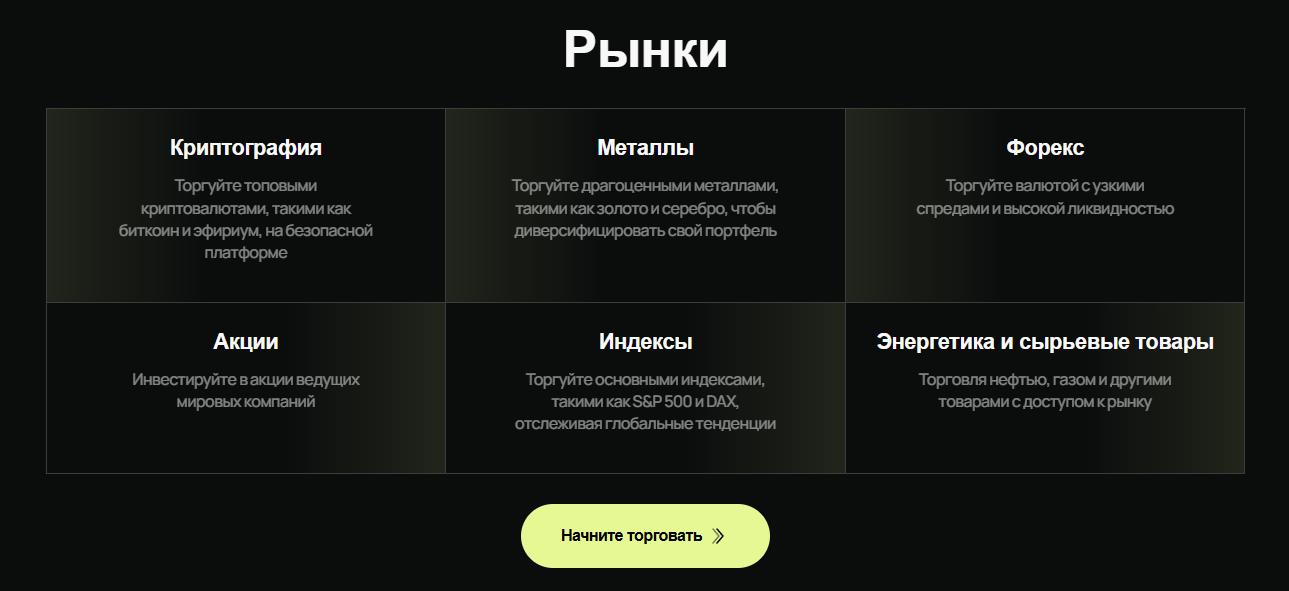 Владельцы BenchMarkets предлагают торговать разными активами: валютными парами, акциями зарубежных компаний, криптовалютой и биржевыми индексами через электронные платформы.