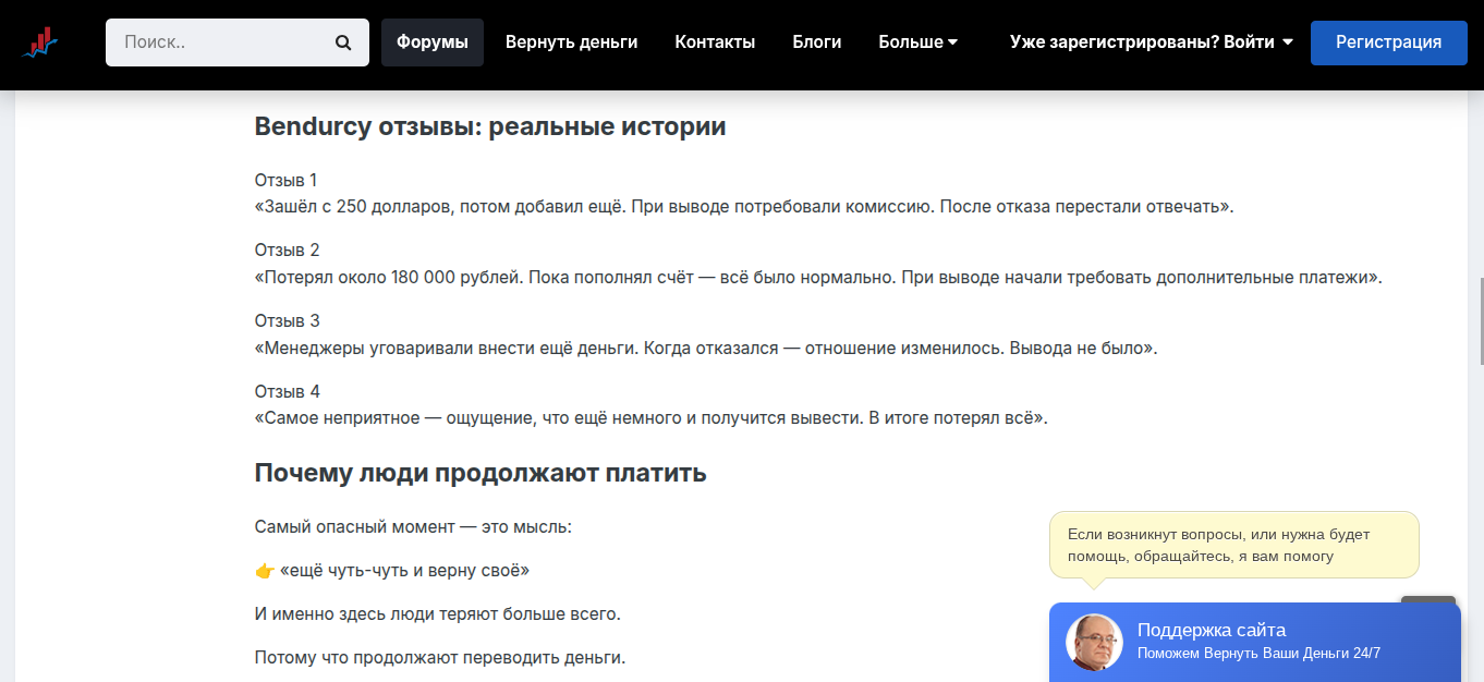 Есть важный нюанс — снять деньги невозможно. Менеджеры биржи BenDurcy com специально заморозят вывод, чтобы выманить деньги на выдуманных услугах. Как только пользователь перестает платить, разработчики его блокируют.