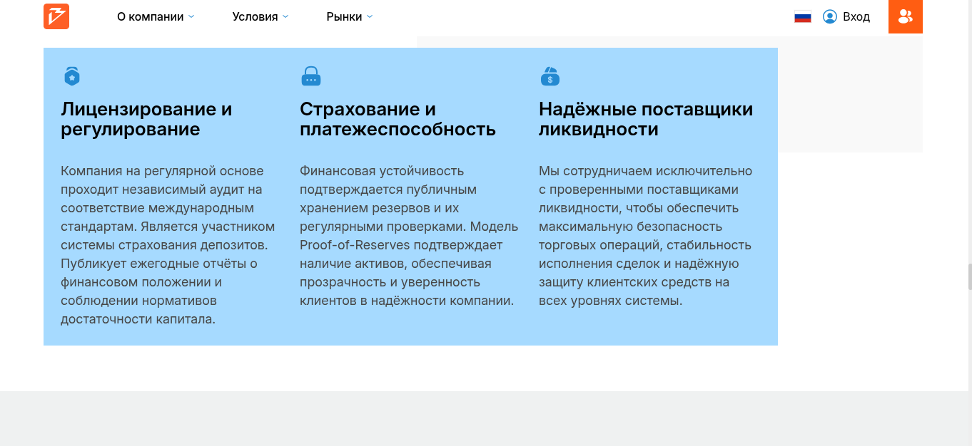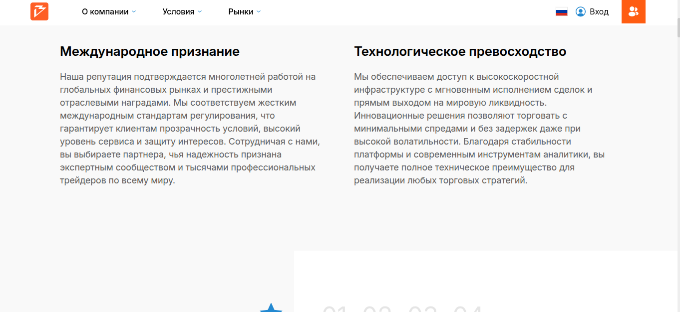 Помимо международного признания разработчики отметили технологическое превосходство. Приписки в этом пункте тоже стандартные: доступ к высокоскоростной инфраструктуре, мгновенное исполнение, выход на мировую ликвидность. Там же есть минимальные спреды, отсутствие задержек. Ни один из фактов не подкреплен, поэтому перечень плюсов тоже считаем блефом.