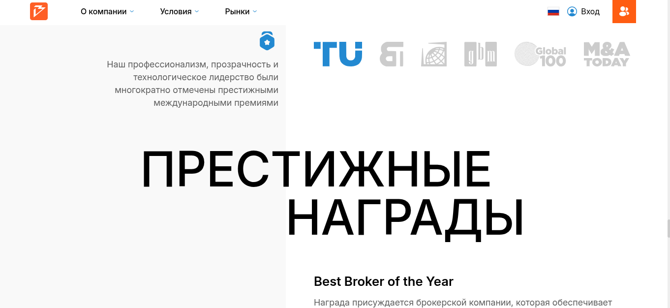 Следующий блок на сайте биржи команда отвела под список наград. Сообщается, что у брокера есть множество побед в престижных номинациях. Какие премии компания имеет в виду: Best Broker of the Year, Best CFD Broker, Fastest Growing Broker. Еще разработчики отметили победу в Leading Multi-Asset Broker, Best Leading Regulated Forex Broker, Best Trading Platform Provider.