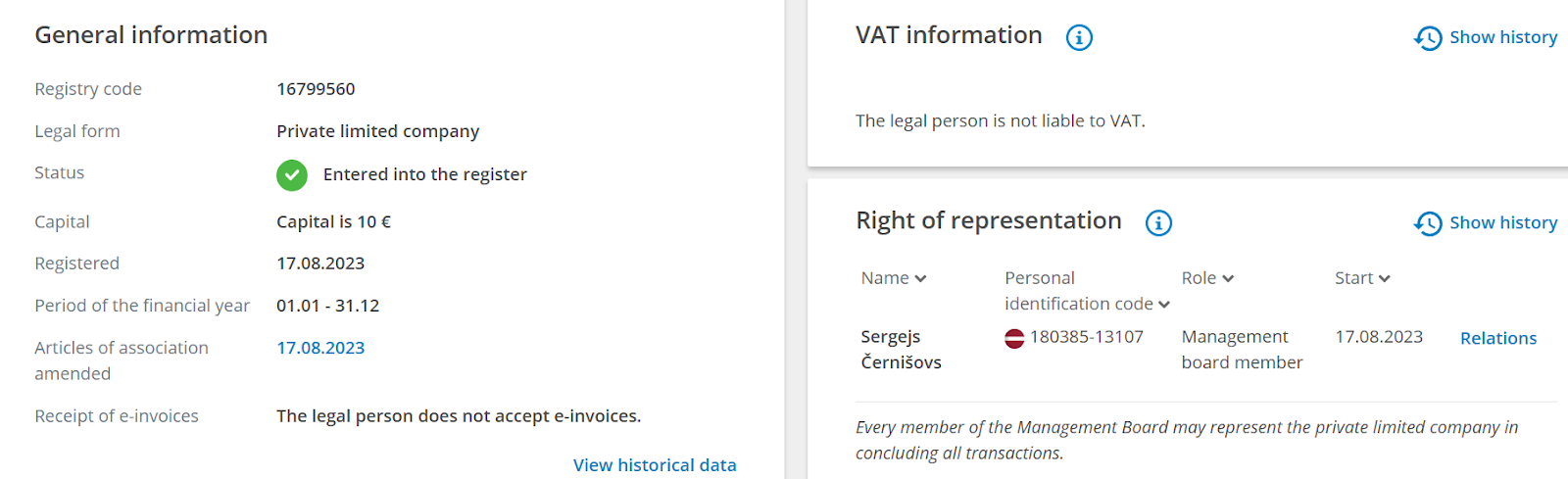 На платформе представлены обменник, прием платежей, бот в Телеграмм для эквайринга и ожидается выход криптовалютного кошелька, а компания действительно зарегистрирована официально, только в Эстонии, что можно проверить на сайте Rik ee.