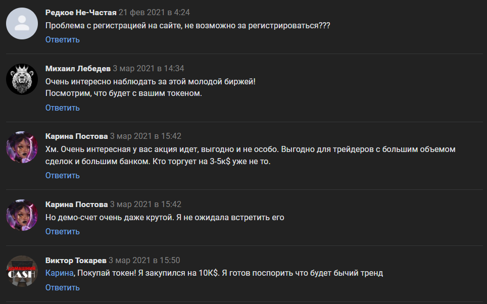 Отзывы о когда-то существовавшей финансовой бирже BetConix носят противоречивый характер. На той же странице ВКонтакте есть специальная ветка обсуждений. Кто-то с интересом, но осторожностью наблюдал за развитием нового проекта, другие возлагали большие надежды на внутренний токен биржи, некоторые сталкивались с проблемами регистрации и т.д.