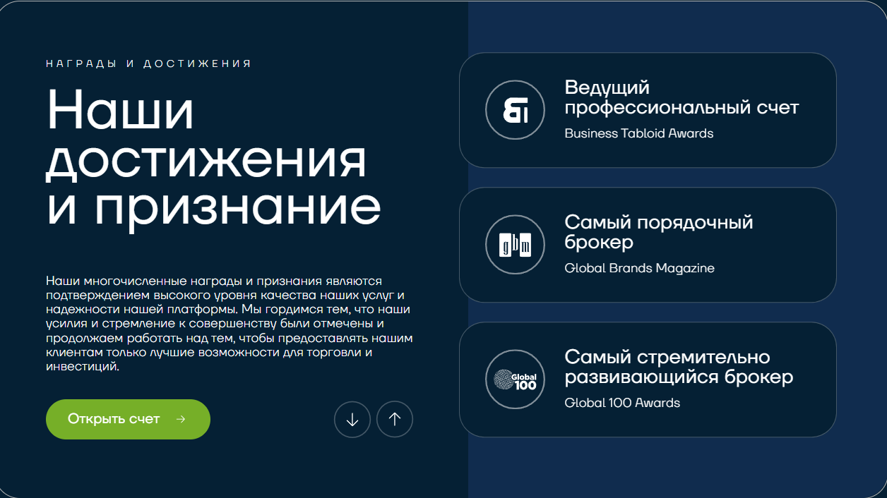 На сайте брокера есть раздел с наградами и достижениями Bhiveny за столько лет плодотворной работы.