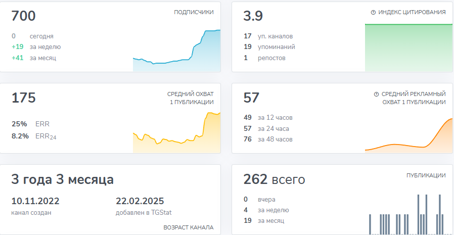- собственный телеграмм-канал рекламного сервиса собрал 700 подписчиков, что наглядно показывает слабое умение владельцев проекта привлекать аудиторию.