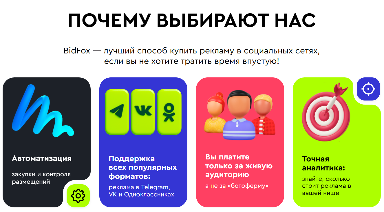 «Бидфокс» автоматически размещает рекламу в соцсетях и обещает избавить маркетологов от рутинного подбора каналов и долгих переписок с администраторами. В этой статье мы детально проверим работу сервиса, узнаем цены и изучим мнения клиентов.