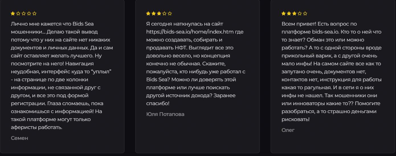Комментарии живых людей подтверждают, что «Бидс Си» – аферисты. Больше всего пользователей сети беспокоит отсутствие документов и какой-то информации о компании. Почерк мошенников легко читается в том, как платформа себя позиционирует.