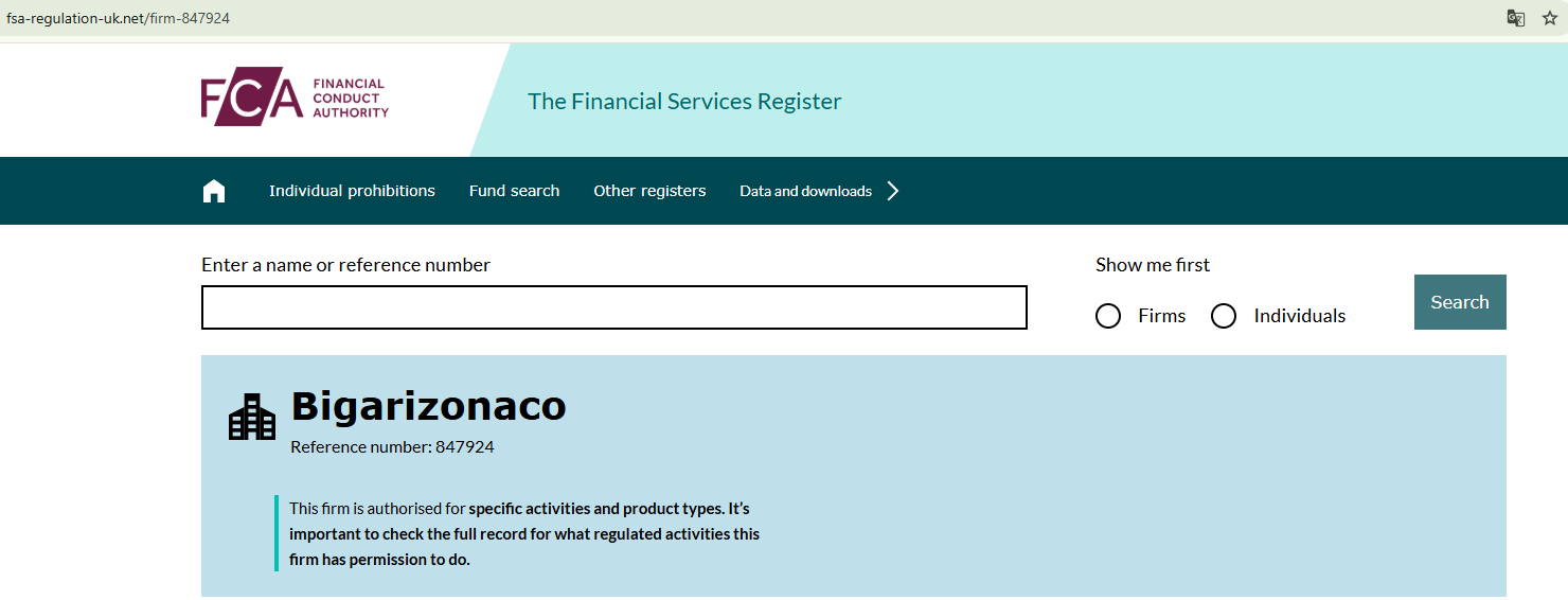«Бигаризонако» хвастается, что его деятельность регулируется мировыми структурами, включая британскую FCA. Вот только когда вы нажимаете на ссылку для проверки, вас перекидывает на дешевую подделку, фейковый сайт-клон. Это уже не просто тревожный звонок. Это явные признаки, что вся схема – развод.