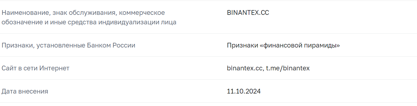 • “Бинатекс” не дает о себе никакой информации, включая лицензию и документы, а на сайте ЦБ был отмечен как пирамида, из-за чего создается впечатление, что Binantex – лохотрон.