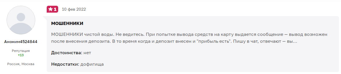 Ни одного положительного отзыва о деятельности брокера нигде на просторах Интернета мы не существует.