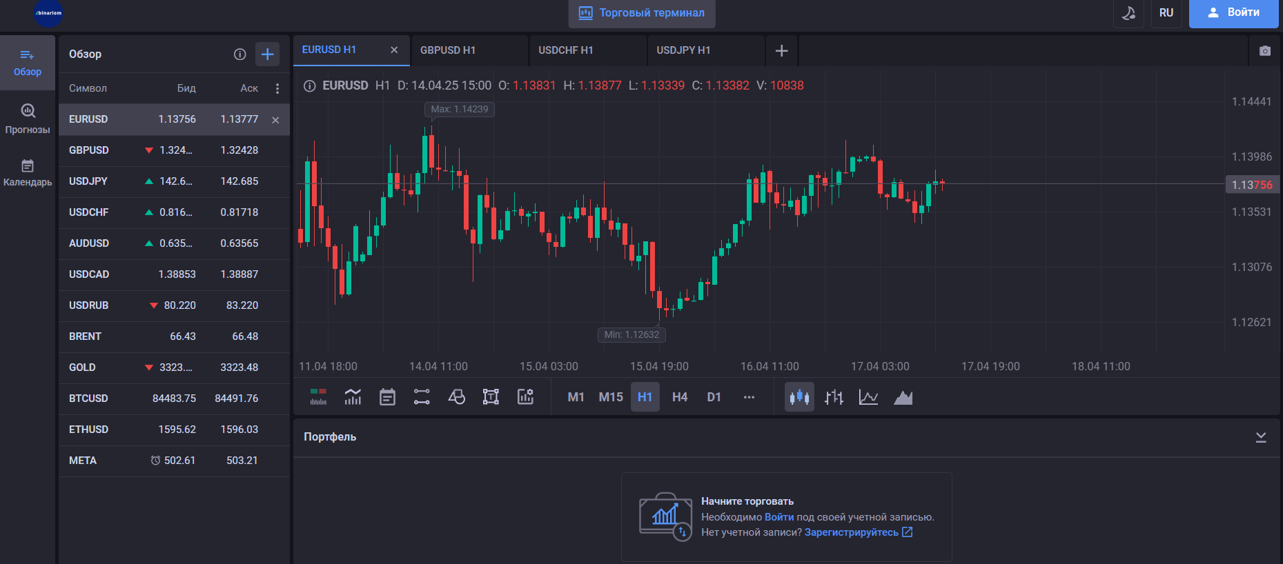 Брокерская организация ничего не сообщает о комиссиях. Однако на платформе Binariom можно ознакомиться с прогнозами рынка, плюс есть календарь финансовых событий.