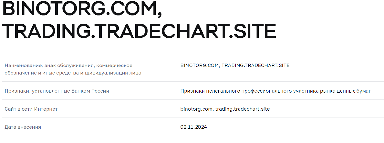 Мы не рекомендуем совершать инвестиции с «Биноторг» .