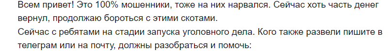 На сторонних источниках найти любые отзывы о Binotorg очень сложно, так как проект только недавно появился. Алексей опубликовал комментарий и пожаловался на обман и развод со стороны брокера, из-за которого он пришел в убыток, но его комментарий носит рекламный характер.