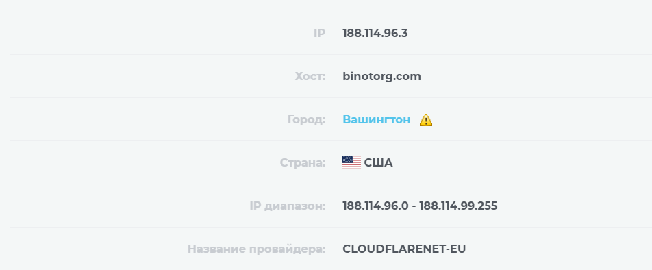 Анализ домена проекта «Бино Трейд» и контактных данных