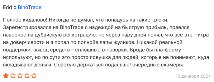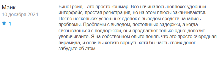 • Отзывы о Binotrade live говорят, что сотрудничать с платформой рискованно.