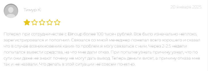 Люди массово не могут вывести средства, такая ситуация может говорить о мошенничестве со стороны Binoup com.
