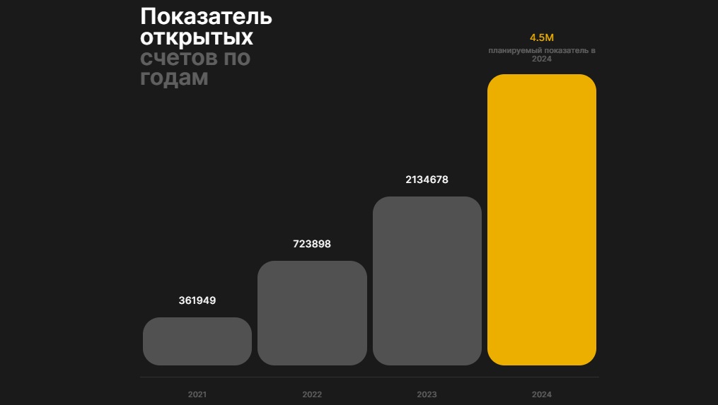 Также на представленной дорожной карте демонстрируется показатель открытых торговых счетов. Если верить графическому изображению, он неуклонно растет. Однако и здесь есть нестыковки. Во-первых, при том что 2024 год уже закончился, он отмечен лишь запланированным количеством активных пользователей. Во-вторых, судя по графику, цифры открытых счетов доходят до нескольких миллионов. Это значит, что трафик на площадке должен быть довольно высоким. Однако проверка домена на специальном сервисе Scamvoid показала, что он крайне низкий.