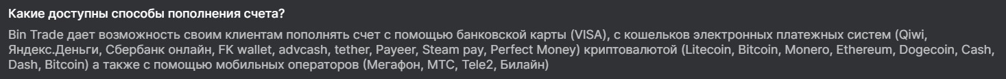 По информации, указанной на сайте, совершить внесение денежных средств можно с помощью банковских карт и электронных платежных систем. Также пополнять баланс допускается через криптовалютные кошельки.