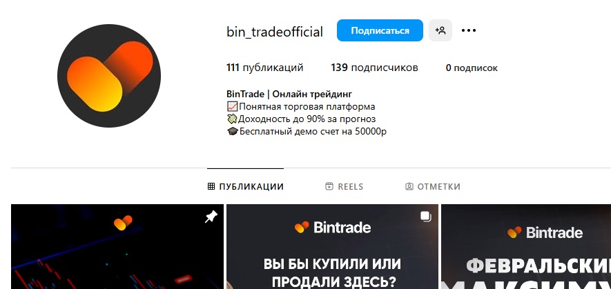 Аккаунт проекта в Инстаграме можно найти по никнейму Bin Tradeofficial. На данный момент он имеет всего 139 подписчиков. Учитывая ранее изученный факт о том, что за 2023 года на площадке якобы было открыто более 2 миллионов счетов, такое количество фолловеров кажется слишком маленьким. Это еще один повод подозревать компанию в предоставлении ложной информации.
