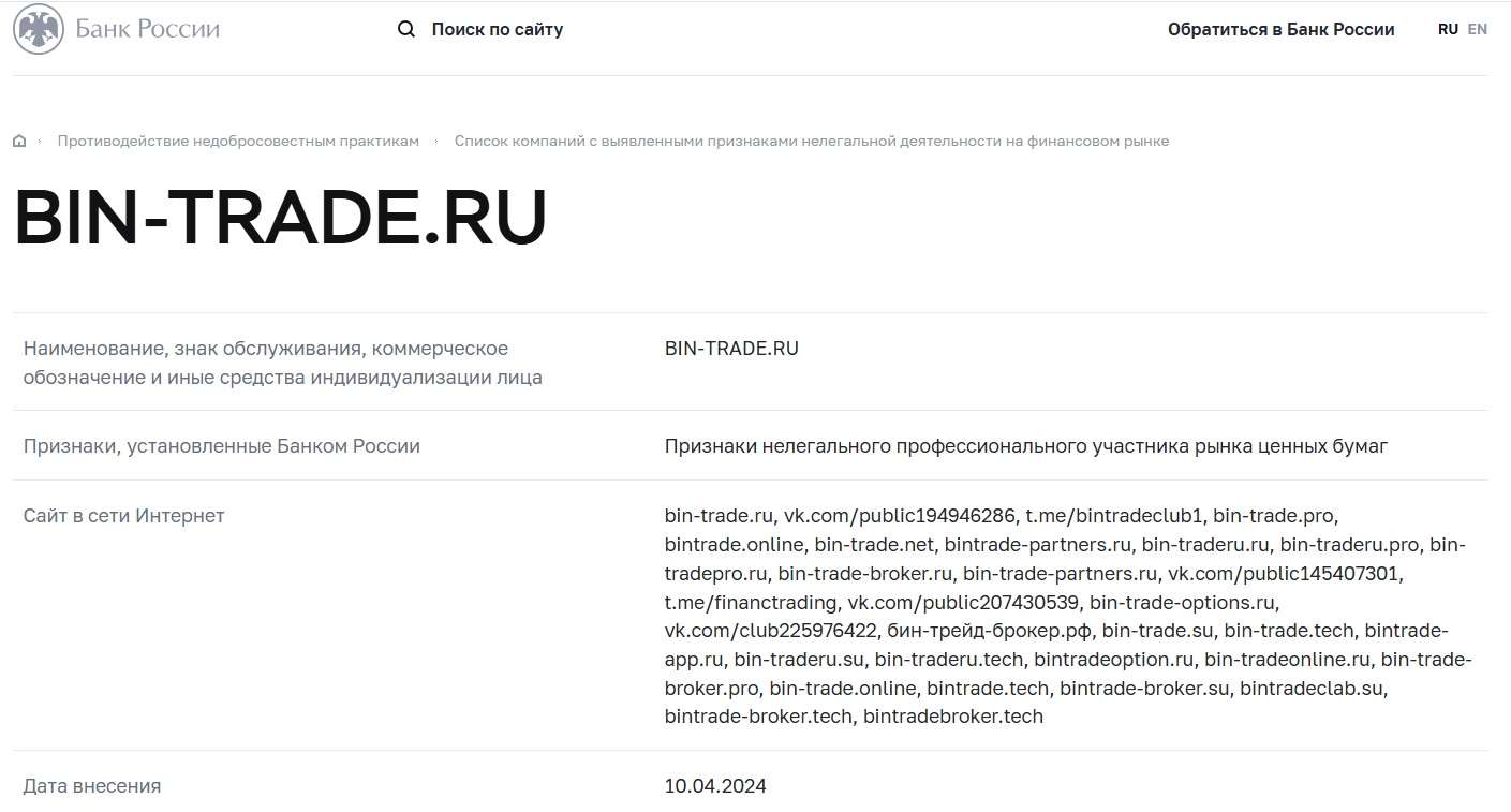 bintradebroker tech отзывы