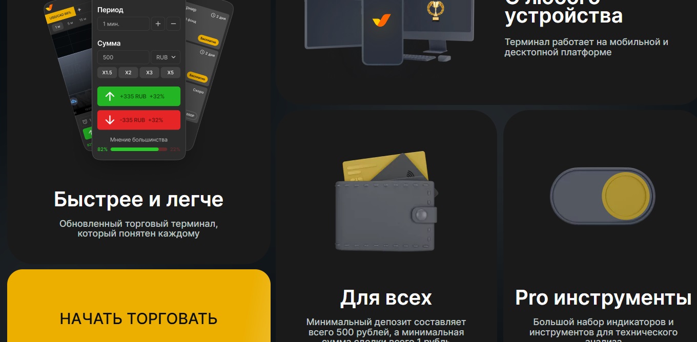 Также на главном сайте можно найти большое количество бесполезных вставок. Подавляющая часть стартовой страницы заполнена различными баннерами с фразами-заманухами по типу «быстрая регистрация» или «начать всего в один клик», которые добавлены только лишь для привлечения внимания. Обычно их используют скамеры и аферисты, которые продать свои услуги другим способом попросту не могут.