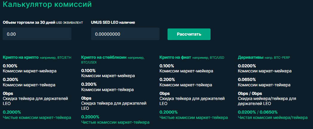 На бирже криптовалют Bitfenix создатели ордеров платят 0,012–0,2%, исполнители — 0,012–0,1% комиссии. За пополнение депозита в криптовалюте сборы не взимаются. Банковские переводы облагаются комиссией от 0,1%, минимум $20. На сайте можно воспользоваться специальным калькулятором, чтобы рассчитать размер оплаты за определенные операции.