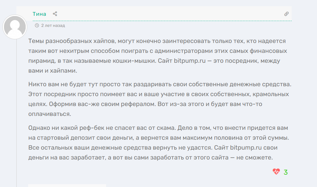 Мы рассмотрели проект Bitpump ru и пришли к следующим выводам.